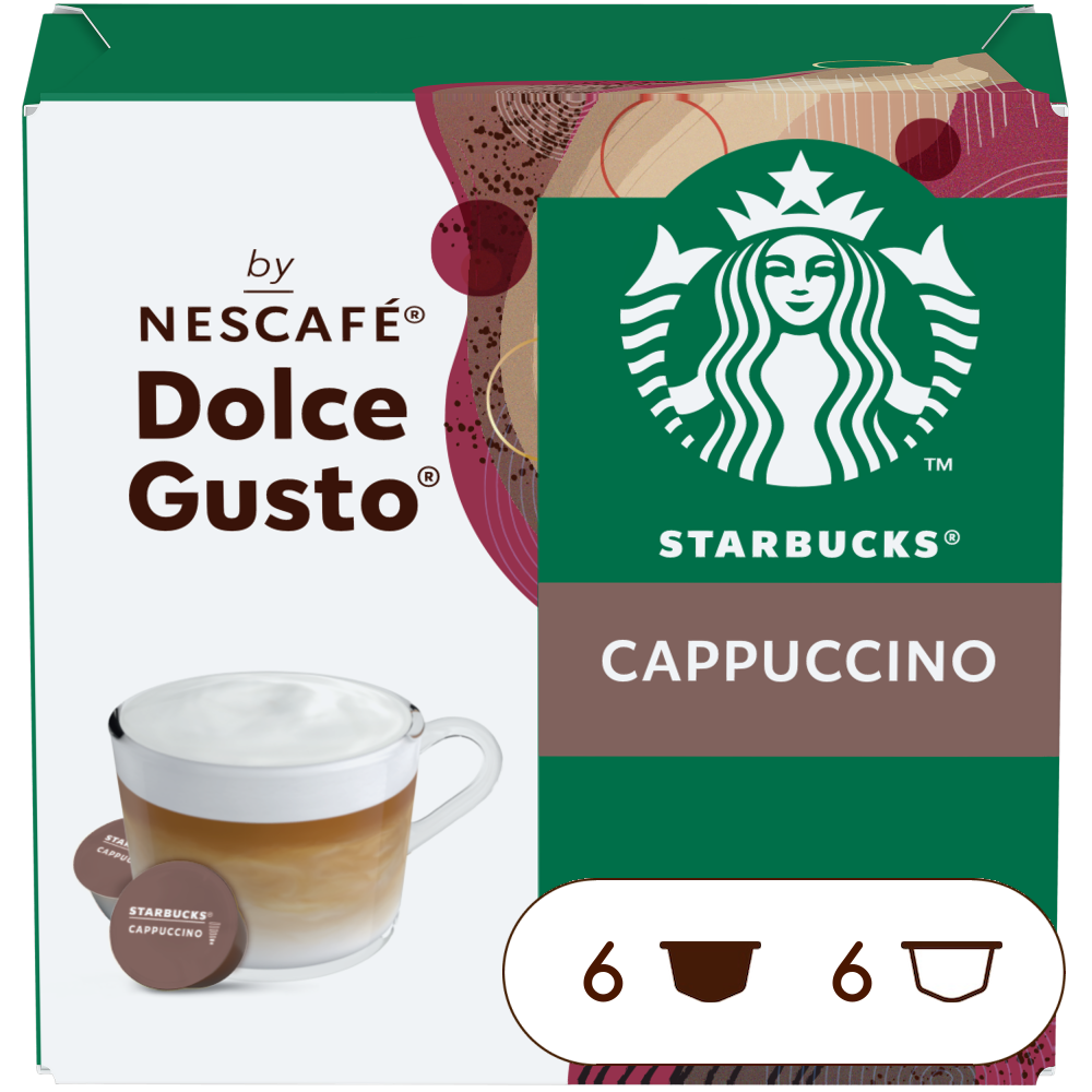 Geniet van de rijke en romige STARBUCKS® Cappuccino die een combinatie van donker gebrande espresso met een romige melklaag samenbrengt, speciaal ontworpen voor NESCAFÉ® Dolce Gusto®- koffiemachines.